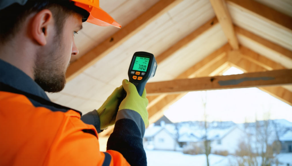Exigez la résistance thermique certifiée de l’isolant, avec un R minimal de 6 m²·K/W. À ce titre, comparez l’épaisseur posée et la conductivité déclarée pour vérifier la cohérence. Demandez aussi la fiche technique et un contrôle ponctuel d’humidité des bois de charpente. Par conséquent, vous validez l’état global du système et sécurisez la performance dans le temps.