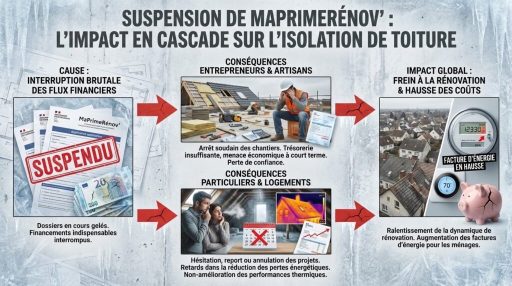 Les conséquences immédiates de la suspension de MaPrimeRénov’ sur l’isolation de toiture